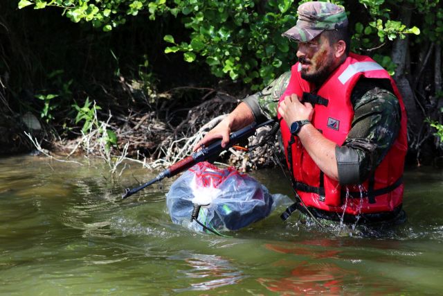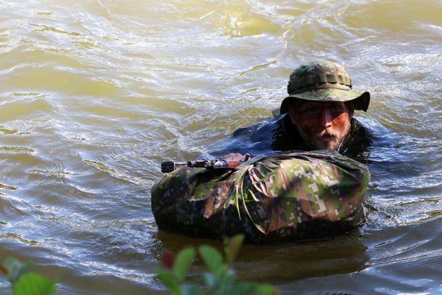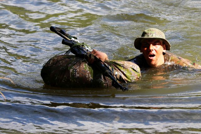Plávanie v uniforme a so zbraňou v Ontáriu