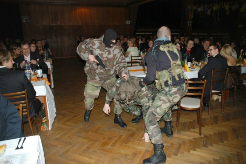 „Všetci zostaňte sedieť, nikomu sa nič nestane, toto je prepad, ...“ asi takto začal kultúrny program V. reprezentačného plesu veliteľa 1. mechanizovanej brigády v Dome kultúry v Topoľčanoch.Pre prítomných bolo určite veľkým prekvapením, keď do sály vtrhli príslušníci 11.mechanizovaného práporu Martin prezlečení za teroristov a vzali rukojemníka. Následne nato zlanili priamo na stred tanečného parketu chlapci z prieskumnej roty z Levíc a teroristov zneškodnili. Vojenský program následne ukončil a plesajúcich súčasne privítal moderátor, ktorý sa zlanil taktiež na stred parketu.