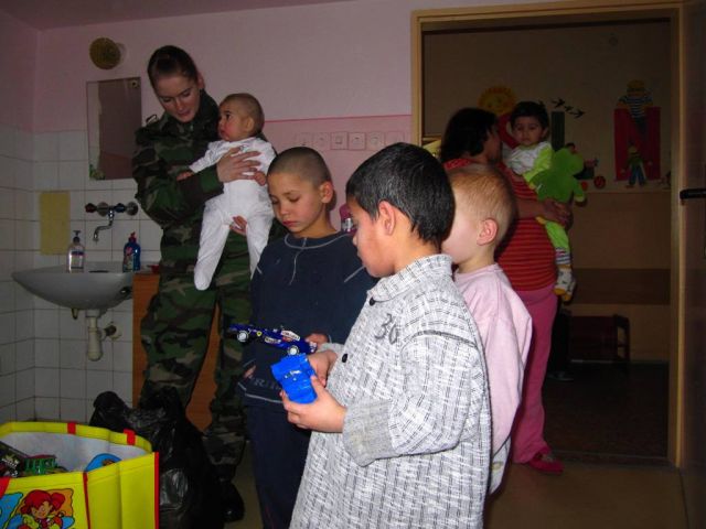 Tak, ako po uplynulé roky, aj dnes, v čase po „Plese veliteľa posádky Trebišov“ sme potešili detských pacientov Nemocnice s poliklinikou v Trebišove hračkami vyzbieranými v zbierke organizovanej 21. zmiešaným mechanizovaným práporom Trebišov. Do uvedenej zbierky s názvom „Plesový bonus 2011“ prispelo mnoho profesionálnych vojakov a zamestnancov práporu nie len hračkami, ale aj finančnými príspevkami, za ktoré boli nakúpené jednorazové plienky, ktorým sa potešil hlavne personál tohto oddelenia, nakoľko je to v ošetrovacom procese pri hospitalizácii pacientov zvlášť nedostatkový materiál, čo potvrdila aj jedna z ošetrujúcich službukonajúcich lekárok - MUDr. Natália JALČOVIKOVÁ. Plesový bonus bol za prápor odovzdať npor. PhDr. Rastislav KENTOŠ, por. Mgr. Erik VOZÁR, por. Zuzka STRAKOVÁ a por. Bc. Patrícia IHNÁTOVÁ. V čase našej návštevy na tomto detskom oddelení bolo hospitalizovaných 12 detských pacientov a týmto oddelením nás previedla vrchná sestra - Mgr. Silvia KOVÁČOVÁ.