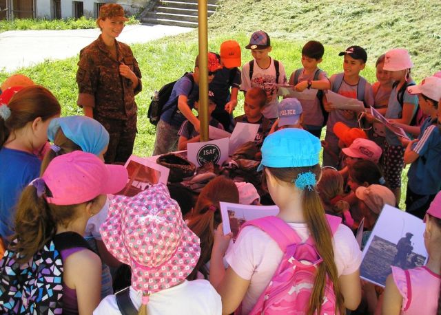 Nadporučíčka Ľudmila Činčárová spolu s nadporučíkom Stanislavom Štefíkom, z veliteľstva 2. mechanizovanej brigády Prešov, deťom priblížili prácu a poslanie profesionálnych vojakov prostredníctvom domáceho a medzinárodného krízového manažmentu. Prítomní poslucháči, nielen deti, ale aj ich vyučujúci, odmenili prednášajúcich svojou zvedavosťou. Ich tváre hovorili za všetko. Dalo sa z nich čítať očakávanie aj obavy, predovšetkým z pozorného počúvania o skúsenostiach nadporučíčky Činčárovej z operácie ISAF, z ktorej sa pred viac ako pol rokom vrátila. Odmenou pre prednášajúcich bol vysoký záujem v podobe otázok počas prednášky a záver prednášky odmenili veľkým potleskom. Deti si mohli okrem iného vyskúšať a oboznámiť sa s výstrojnými súčiastkami profesionálneho vojaka - nosný modulárny systém so všetkými súčasťami.