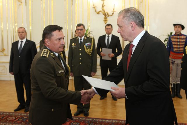 Prezident SR Andrej Kiska dnes vymenoval jedného nového brigádneho generála Ozbrojených síl SR a dvoch ďalších dôstojníkov povýšil do vyšších generálskych hodností. Riaditeľa Vojenského spravodajstva generálmajora Jána Balciara povýšil do hodnosti „generálporučík“. Národného riaditeľa pre vyzbrojovanie – generálneho riaditeľa Sekcie modernizácie a infraštruktúry Ministerstva obrany SR brigádneho generála Daniela Zmeka povýšil do hodnosti „generálmajor“. Zástupca veliteľa Pozemných síl Ozbrojených síl Slovenskej republiky plukovník Karol Navrátil bol prezidentom vymenovaný do hodnosti „brigádny generál“.