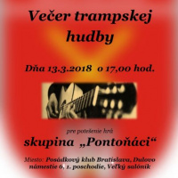Pozvánka na koncert skupiny Pontoňáci 9. Marec 2018 Posádkový klub Bratislava Vás srdečne pozýva na koncert skupiny "Pontoňáci", ktorý sa uskutoční na Posádkovom klube Bratislava, Dulovo námestie 6, 1. poschodie.
