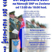 Pozývame Vás na Oslavy dňa Ozbrojených síl, ktoré sa budú konať na celom území zvolenského námestia v čase od 13:00 - 18:00 hod. Súčasťou osláv budú statické, ale aj dynamické ukážky bojovej techniky a prezentácie jednotlivých spoluorganizátorov.