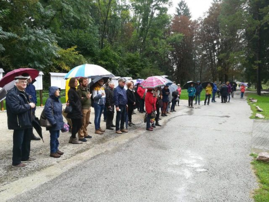 Vzhľadom k veľmi nepriaznivému počasiu sa potom časť účastníkov premiestnila do budovy štábu, kde pán generál porozprával rôzne zaujímavosti z rekonštrukcie cintorína a odpovedal na jednotlivé otázky.