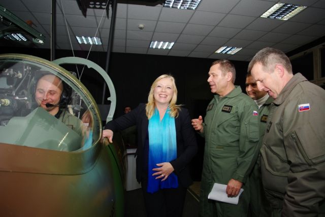 Po krátkej prehliadke priestorov pohotovostného systému sa delegácia presunula na leteckú základňu Sliač, kde ju privítal jej veliteľ plukovník Vladimír Lisý. Spôsob vykonávania výcviku na bojovej aj výcvikovej letke a spôsobe akým plníme záväzky, ktoré vyplývajú pre vzdušné sily nielen zo zákonov SR, ale aj medzinárodných záväzkov jej priblížili vo svojich prezentáciách veliteľ bojovej letky podplukovník Marián Bukovský, veliteľ výcvikovej letky podplukovník Roman Poláček a náčelník riadenia letovej prevádzky major Miroslav Burčík. Profesionalitu vojenských letcov pani predsedníčka vlády zhrnula do týchto slov „ Letectvo je pýchou nášho štátu“.