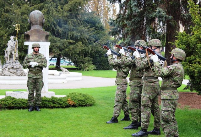 Predstavitelia prešovskej posádky na oslavách 72. výročia od ukončenia 2. svetovej vojny