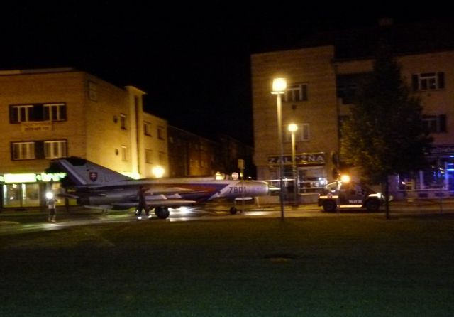 Preprava stíhačky MiG-21 na námestie vo Zvolene