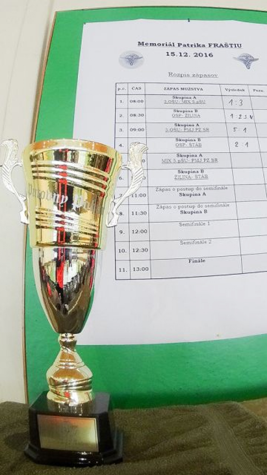 15. december 2016, Slovensko - Žilina: V skorých ranných hodinách začína na pôde 5. pluku špeciálneho určenia bežný pracovný deň, avšak v niečom je predsa len výnimočnejší. Kolektív príslušníkov 3. oddielu špeciálneho určenia disciplinovane a s veľkým zápalom prichádza s drobným časovým predstihom do útvarovej telocvične. Nezvierajú v rukách žiadne zbrane, nie sú ovešaní vojenským výstrojom, ani zásobníkmi s muníciou. V rukách držia florbalové hokejky, v batohoch si nesú športovú výstroj, na perách široké úsmevy a v srdciach intenzívne spomienky na svojho padlého kamaráta.