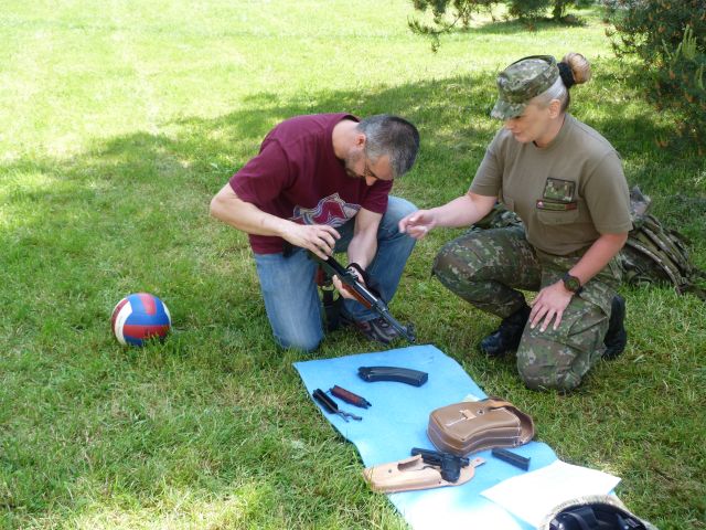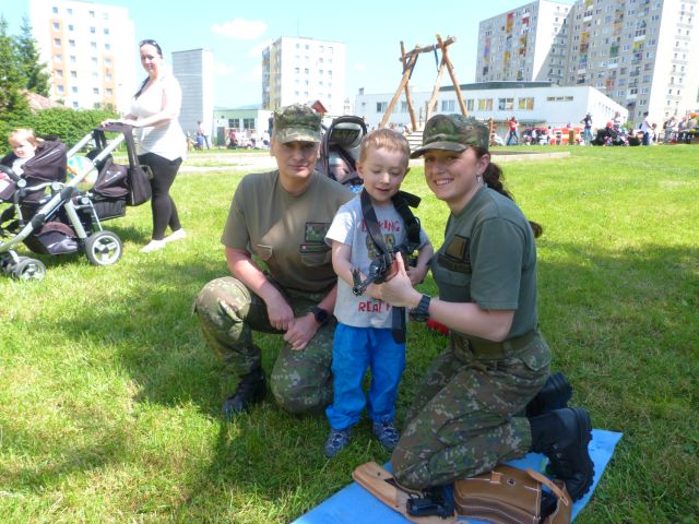 nosný modulárny systém, prilbu a ochrannú masku. Tí najodvážnejší sa dokonca nechali zamaskovať maskovacími farbami. Pripravené stanovište však nezaujalo len tých najmenších, ale aj ich otcov, ktorí sa nachvíľu vrátili do čias základnej vojenskej služby.
