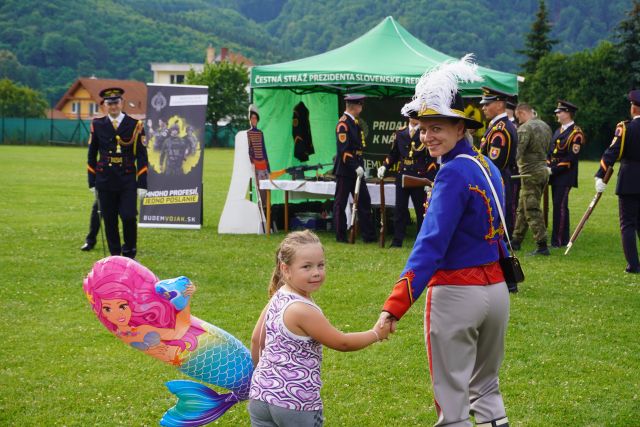 Ďalšia časť programu bola zameraná na ukážky zabezpečenia štátno-protokolárnych akcií pre prezidentku SR, kde si interaktívnym spôsobom prítomní vyskúšali úlohu kráľa a kráľovnej a ich privítanie na letisku. Počas jednotlivých ukážok mali diváci možnosť súťažiť o propagačné materiály, ktoré nám pomohlo zabezpečiť oddelenie marketingu MO SR.