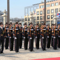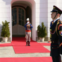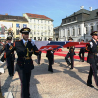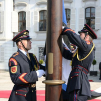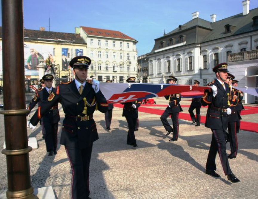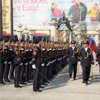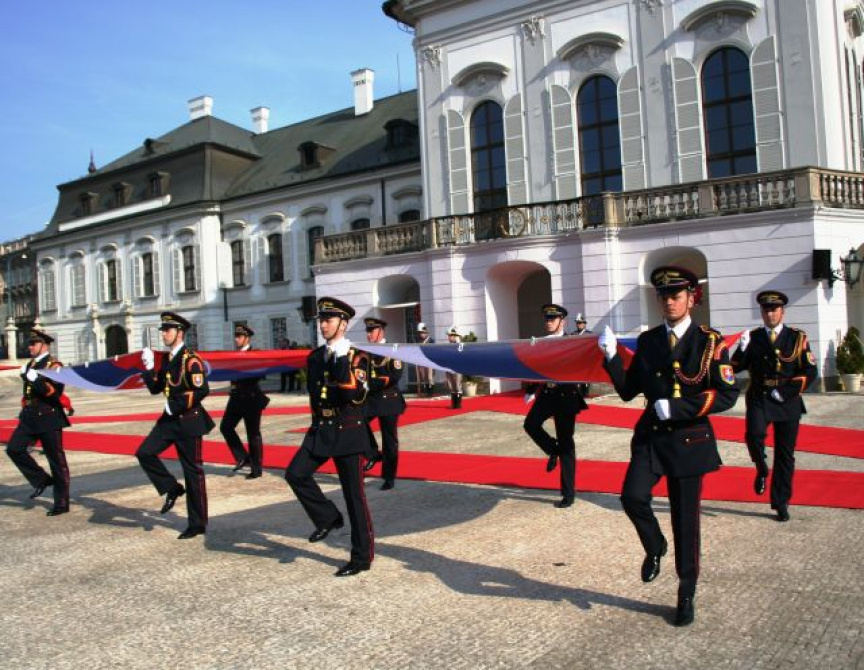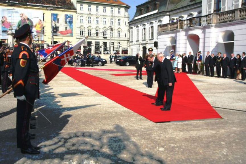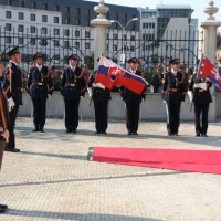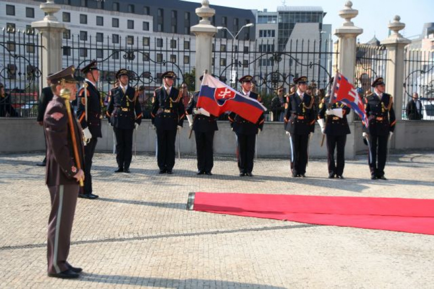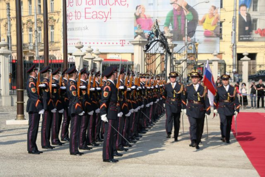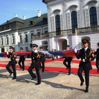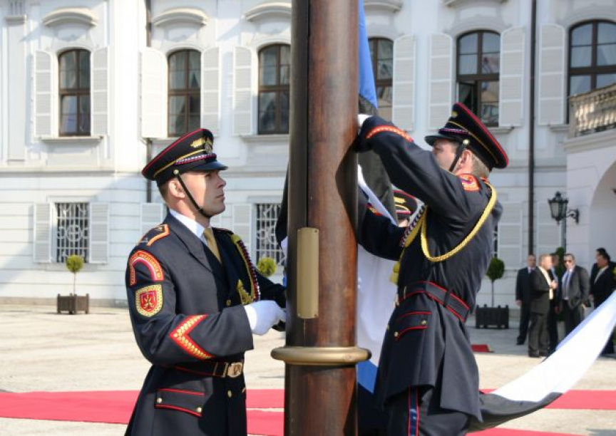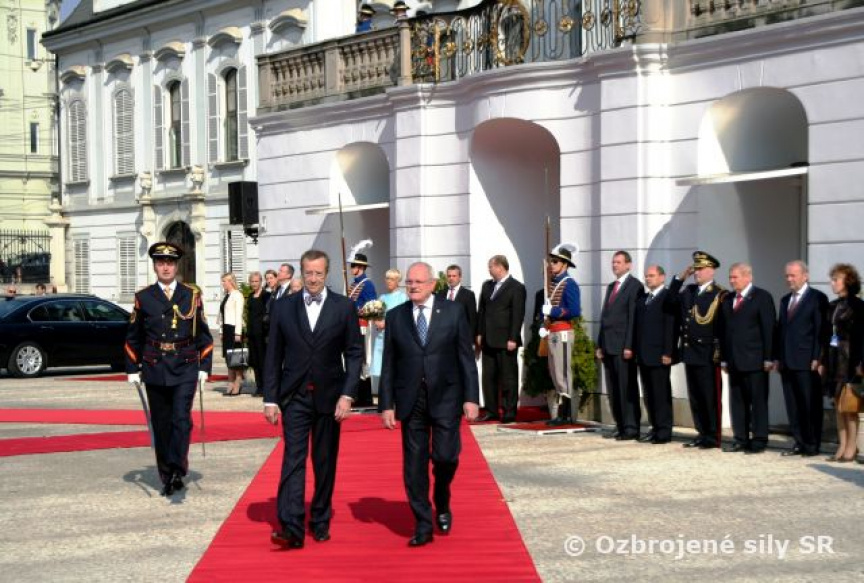 Estónskeho prezidenta privítali plnými vojenskými poctami na nádvorí Prezidentského paláca príslušníci Čestnej stráže prezidenta Slovenskej republiky pod vedením veliteľa útvaru plukovníka Miroslava Ištvána.