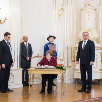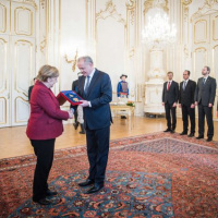 Prezident Andrej Kiska prijal vo štvrtok 7. februára v Prezidentskom paláci nemeckú kancelárku Angelu Merkelovú a odovzdal jej najvyššie štátne vyznamenanie Rad Bieleho dvojkríža I. triedy za mimoriadne zásluhy o všestranný rozvoj vzťahov medzi Slovenskom a Nemeckom.