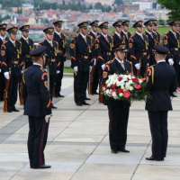 Dôstojnú spomienku na obete druhej svetovej vojny zabezpečili položením venca v mene prezidenta SR príslušníci Čestnej stráže prezidenta SR.