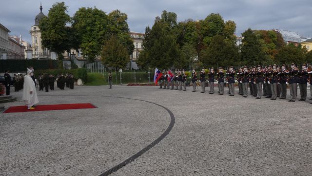 Slávnostný ceremoniál na zadnom nádvorí a v priestoroch Grasalkovičovho paláca zabezpečili na profesionálnej úrovni príslušníci Čestnej stráže prezidenta SR pod velením zástupcu veliteľa 1.roty Čestnej stráže prezidenta SR kapitána Tomáša Meda.
