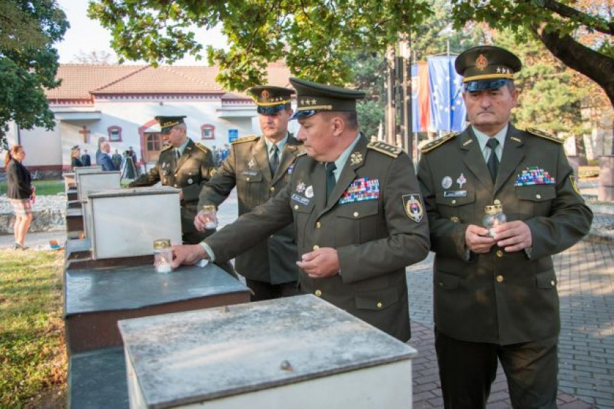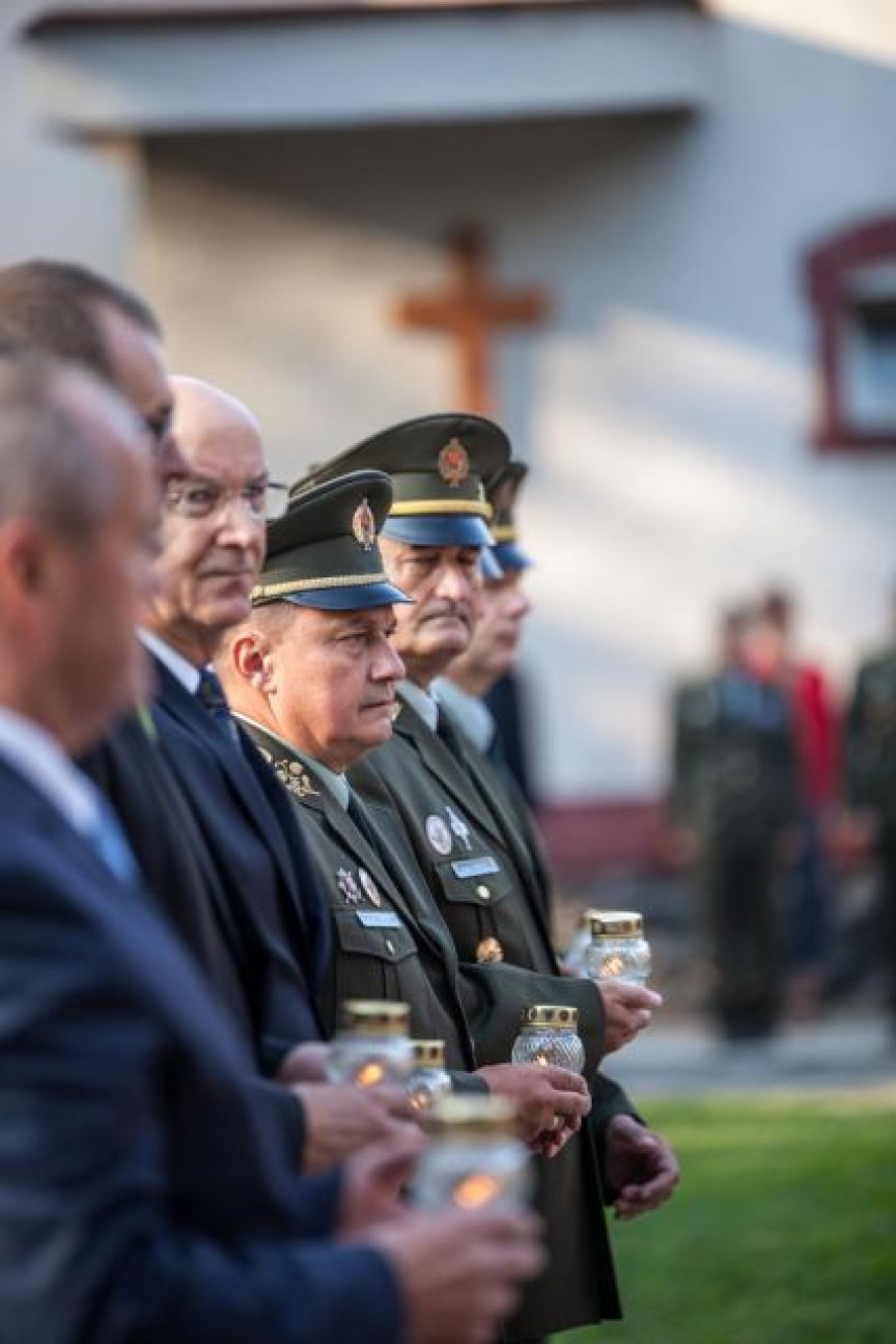 V predstihu sme si dnes v priestoroch Kutuzovových kasární pripomenuli Deň Ozbrojených síl SR. Na úvod slávnostného zhromaždenia čelní predstavitelia rezortu položili vence a zapálili sviečky pri pamätníku zmierenia, ktorý v sebe uchováva prste hliny z bojísk, na ktorých položili životy slovenskí vojaci, ako aj v sieni cti a slávy kde sme si pripomenuli padlých v operáciách medzinárodného krízového manažmentu.