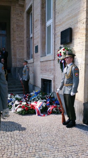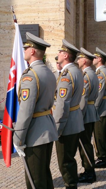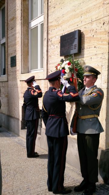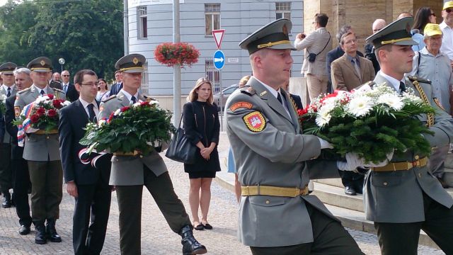 Hostia v sprievode príslušníkov Čestnej stráže OS SR a za tónov Vojenskej hudby OS SR Bratislava položili vence k pamätníku obetí a spoločne vzdali poctu ich pamiatke.