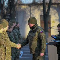 Na záver slávnostného nástupu prevzali vybraní profesionálni vojaci vojenské vyznamenania z rúk veliteľa 81. krídla Sliač.