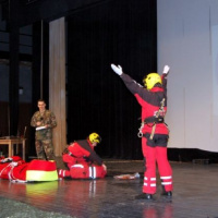 Svoje umenie sem prišli predviesť aj príslušníci roty podpory velenia a Leteckej pátracej a záchrannej služby z Leteckej základne generálmajora Otta Smika Sliač. Pohodovú náladu svojím hudobným repertoárom hneď na začiatok navodila Vojenská hudba Banská Bystrica. Následný Showprogram Čestnej stráže OS SR a možnosť vyskúšať si vzdávanie pocty so zbraňou, prítomných študentov presvedčil, že to, čo vyzerá jednoducho v podaní vojakov čestnej stráže sa bez riadneho drilu nedá len tak ľahko zvládnuť. Dynamická ukážka sebaobrany a boja zblízka s atraktívnym hudobným podmazom v podaní príslušníkov roty podpory velenia naplno pritiahla pozornosť študentov stredných škôl. Napätie v sále sa dalo priam krájať, keď muži v čiernych kuklách predviedli, ako dokonale ovládajú svoje remeslo. Vtom svetlá domu kultúry pohasli a z reproduktorov sa ozvala komunikácia posádky vrtuľníka LPZS počas záchrany zraneného pilota. V svetle reflektorov sa objavujú príslušníci LPZS poskytujúci odbornú prvú pomoc, stabilizujú pacienta a následne navádzajú vrtuľník pre transport. Ktovie koľko z prítomných študentov by vedelo poskytnúť prvú pomoc aspoň z polovice tak ako oni? Vynikajúcu atmosféru dňa už len podčiarklo vystúpenie športovcov Dukly Banská Bystrica, vojenskej polície a samozrejme hviezdy večera vlčiaka Binga pri hľadaní výbušného nástražného systému.