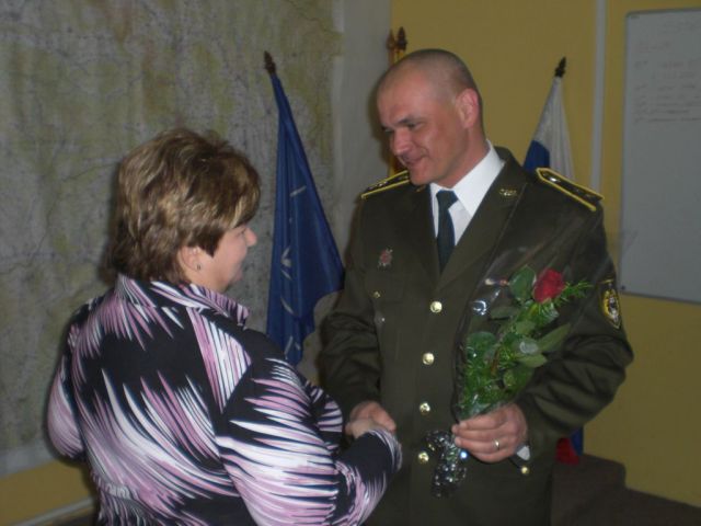 V mene všetkých kolegov odovzdal veliteľ práporu podplukovník Erik Hartmann spolu s veliacim poddôstojníkom kyticu kvetov ako poďakovanie za ich obetavosť, odvedenú prácu a trpezlivosť ktorú majú s nami mužmi, zároveň im poprial do ďalšieho obdobia pevné zdravie, veľa šťastia, sily, radosti a úsmevu.