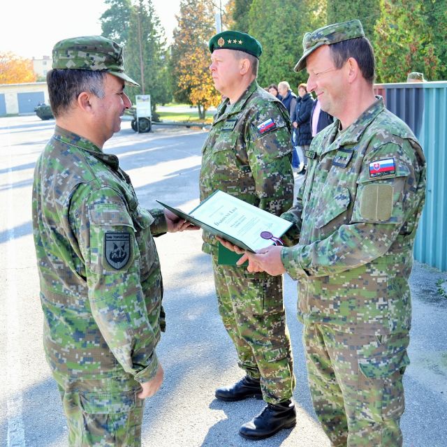Na záver poprial veľa úspechov, rozumných rozhodnutí a v neposlednej miere vyjadril poďakovanie aj príslušníkom veliteľstva brigády za podporu obom odchádzajúcim profesionálnym vojakom.
