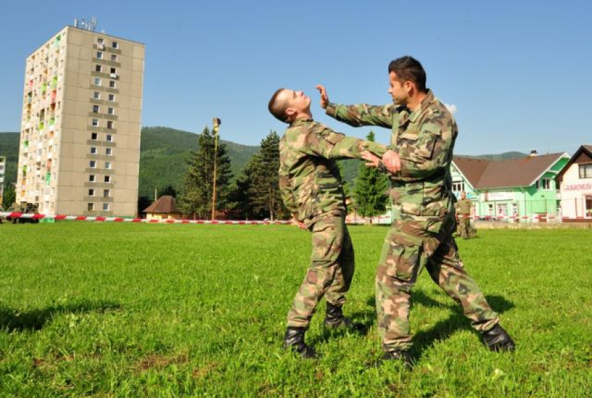 Príslušníci raketometného oddielu, pod vedením kapitána Norberta Hutku, predviedli žiakom gymnázia ukážky sebeobrany, ručných zbraní a základov topografie. Príslušníci rmo, pod vedením rotmajstra Petra Mlákaya, predviedli aj základné techniky pádov, kopov, úderov a obranných techník sebeobrany. Desiatnik Peter Hutka žiakom predviedol ručné zbrane príslušníkov rmo, ktoré si žiaci mohli poťažkať, poprezerať poprípade rozobrať, ak si trúfli. Rotný Ľuboslav Buchta uviedol žiakov do problematiky topografie a základných zručností s mapou, orientáciu v teréne a prácu s buzolou.