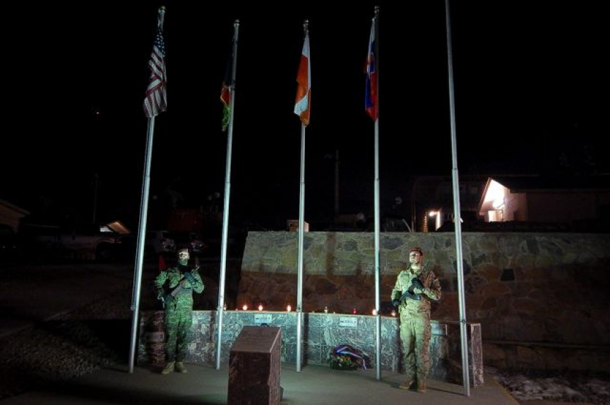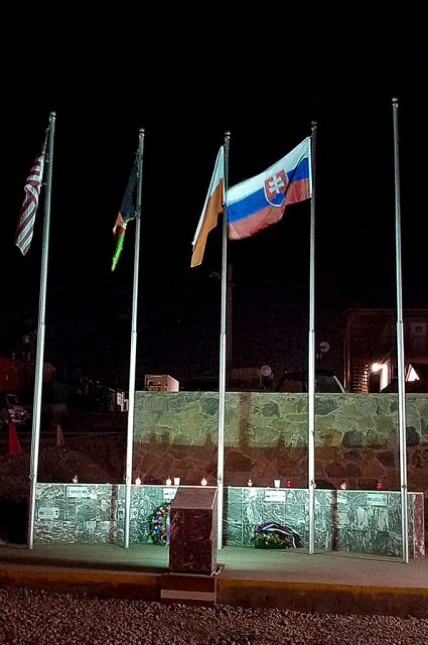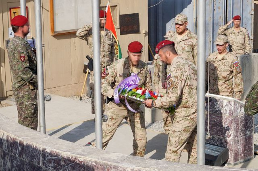 Ku kolegom z domovského pluku sa pripojil a prišiel vzdať hold pamiatke padlým aj veliteľ slovenského kontingentu podplukovník Roman Majerčiak sprevádzaný členmi slovenského národného podporného prvku nadporučíkmi Martinom Lukáčom a Karolom Polnišerom. Na znak úcty spoločne položili veniec k symbolickému pomníku v kempe.
