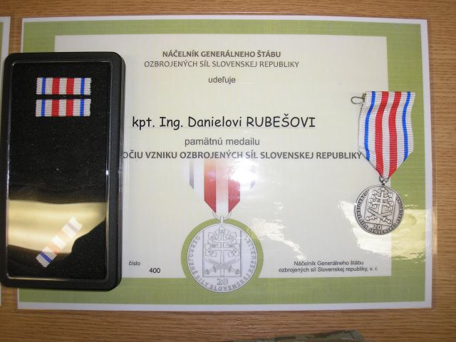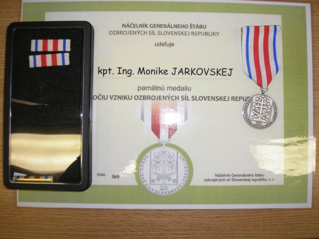 Pamätnú medailu k 20. výročiu ozbrojených síl SR si 12. februára v Trenčíne z rúk veliteľa plukovníka gšt. Jána Žarnovického prevzalo päť príslušníkov Spoločnej logistickej podpornej skupiny (SLSP).