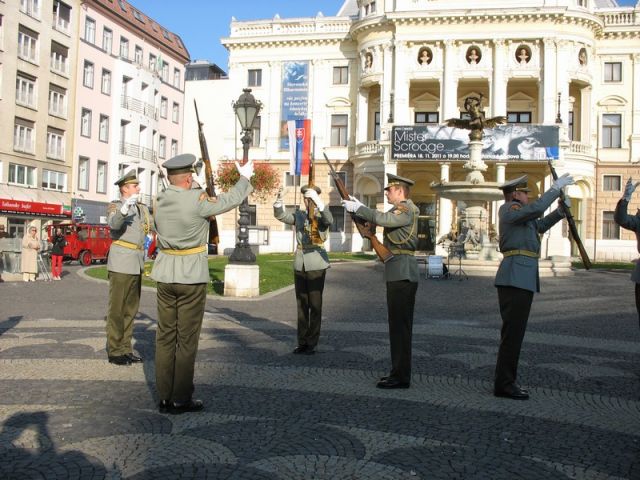 Popoludní sa ešte jednotka Čestnej stráže OS SR a Vojenská hudba OS SR prezentovala showprogramom a koncertom na Hviezdoslavovom námestí.