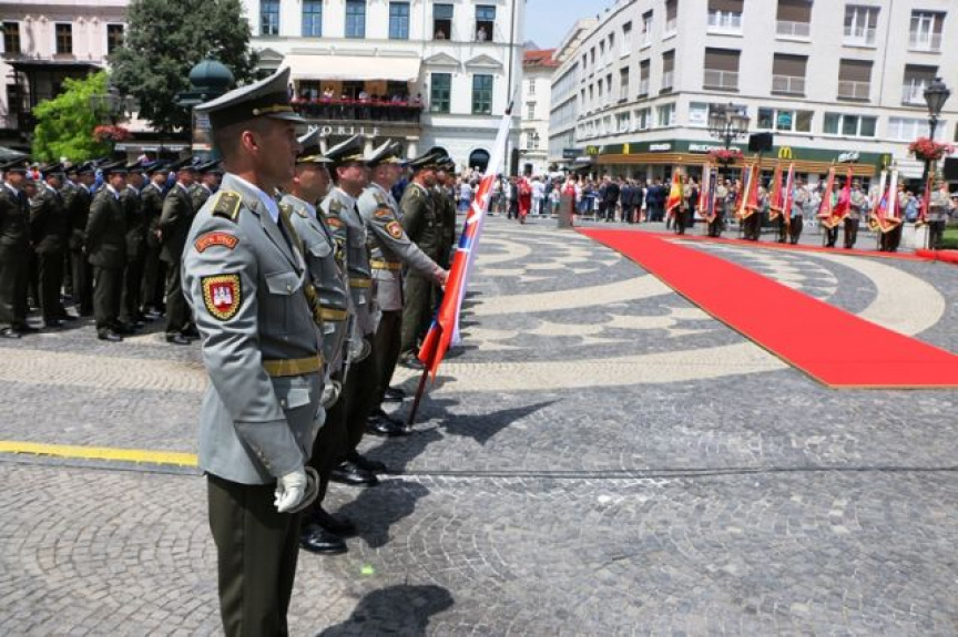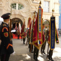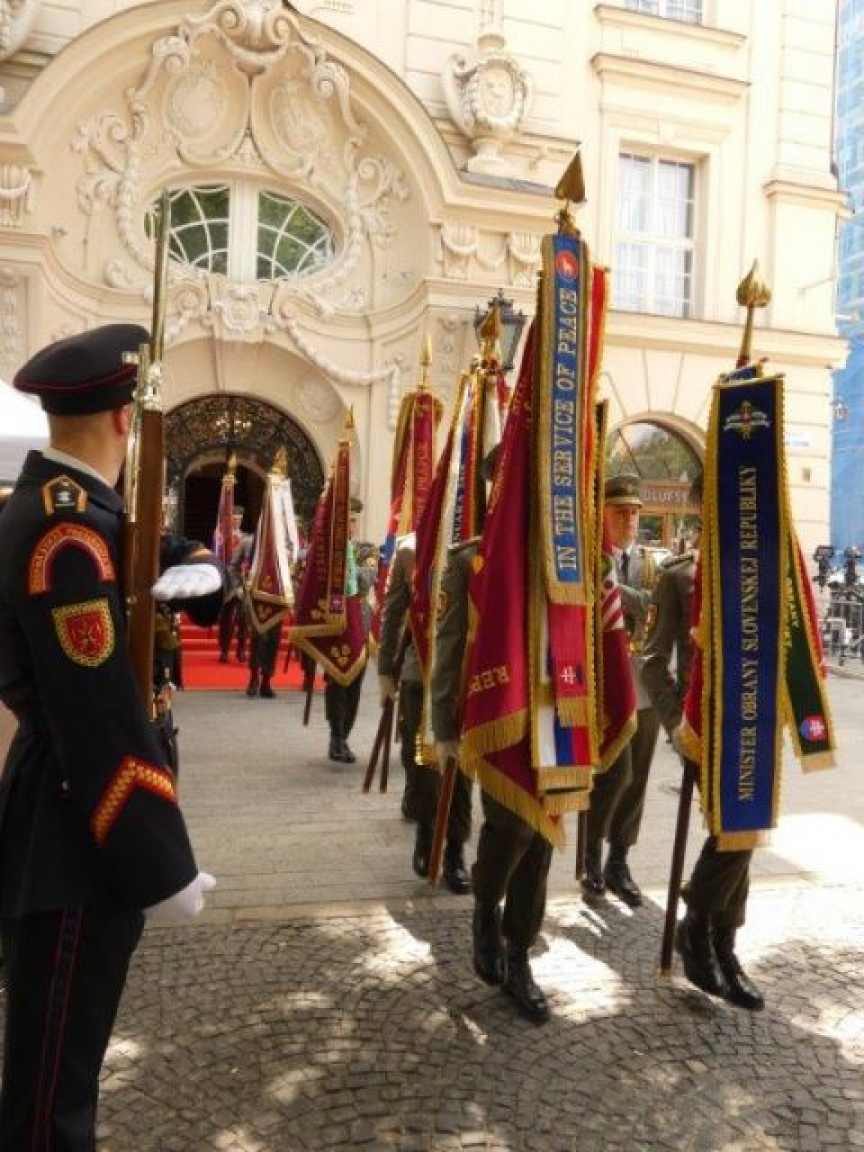 Súčasťou slávnostného aktu boli aj bojové zástavy vojenských zväzkov a vojenských útvarov, ktoré priniesli príslušníci Čestnej stráže OS SR v historických uniformách pod velením čatára Záhorčaka.