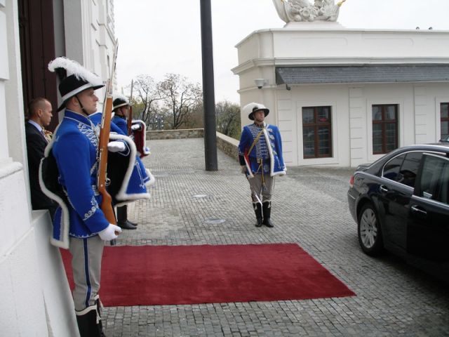Čestná stráž OS SR vojenskými poctami - špalierom na Bratislavskom hrade a Vojenská hudba OS SR na nádvorí Prezidentského paláca pod velením kapitána Borisa Hokinu zvýraznila výnimočnosť stretnutia hláv štátov.