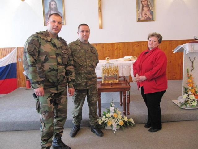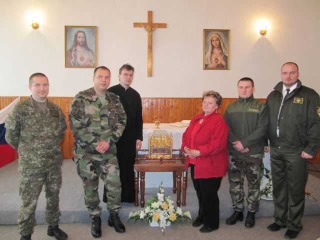 Relikvia svätého Cyrila je už od roku 1964 uchovávaná v Katedrále sv. Emeráma v Nitre a v rámci trojročnej prípravy na slávenie 1150. výročia príchodu vierozvestov – sv. Cyrila a Metoda putuje po jednotlivých farnostiach. V rámci tejto púte sa táto vzácna relikvia dostala aj do jednotlivých zložiek ordinariátu OS a OZ SR, teda aj k 21. zmiešanému mechanizovanému práporu v Trebišove. Sv. Cyril zomrel 14. februára 869 a bol pochovaný po pravej strane oltára v rímskej Bazilike sv. Klementa. Zachovali sa mnohé písomné zmienky o zázrakoch, ktoré sa udiali pri jeho hrobe. V súvislosti so spomínanou významnou udalosťou príchodu vierozvestov – sv. Cyrila a Metoda sa konal „Obrad prijatia a uctenia relikvií sv. Cyrila“ v kaplnke práporu. Tento obrad celebroval starší kaplán práporu npor. Mgr. Ján SZAKALA.