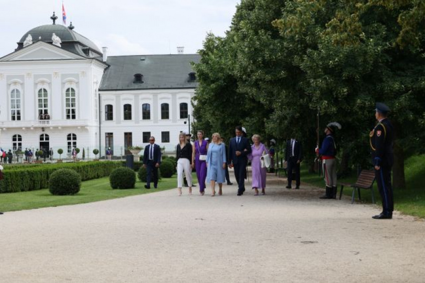 Príslušníci Čestnej stráže prezidenta SR a pani prezidentka SR Zuzana ČAPUTOVÁ sa spoločne zvečnili na fotografii a po jej odchode špalierom definitívne opustila Grasalkovičovi palác za tónov jej obľúbenej piesne "Najkrajší kút v šírom svete", ktorú odohrala Vojenská hudba OS SR, Bratislava.
