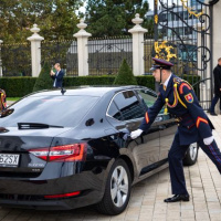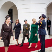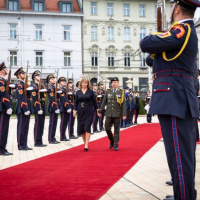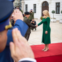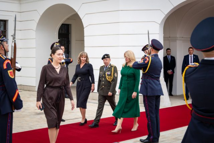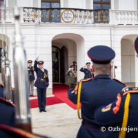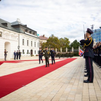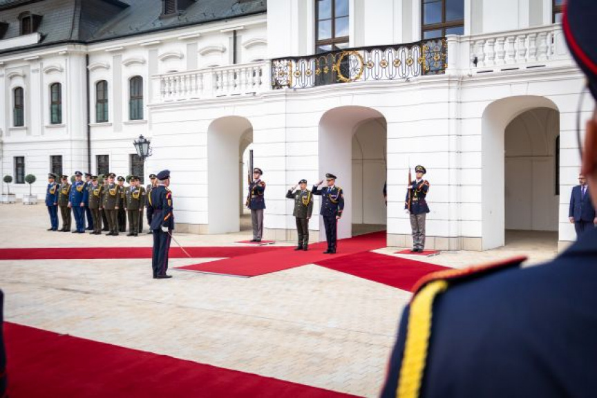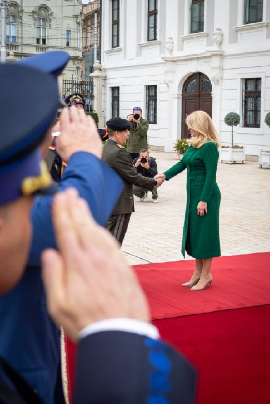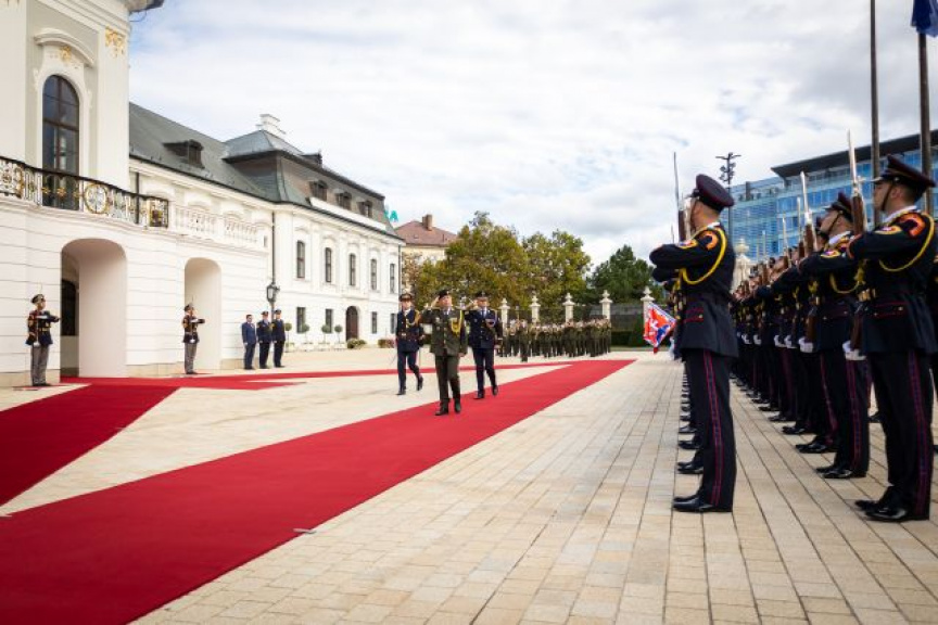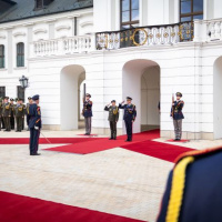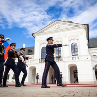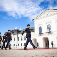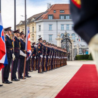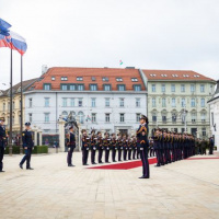 Plné pocty na prednom nádvorí Grasalkovičovho paláca zabezpečili príslušníci Čestnej stráže prezidenta SR pod velením majora Vladimíra RAKOVIČA.