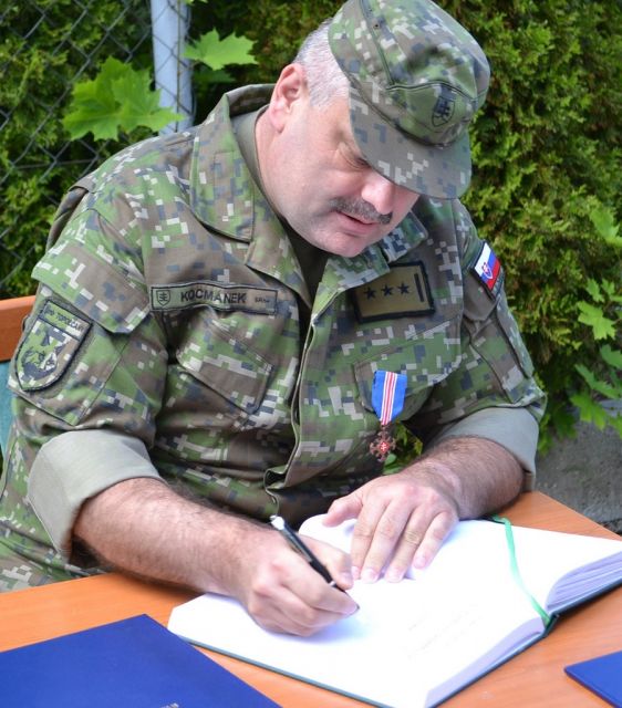 Spoločný nástup bol ukončený zápisom do kroniky útvaru odchádzajúcim podplukovníkom Štefanom Andrášom a jubilantom rotmajstrom Romanom Kocmánkom.