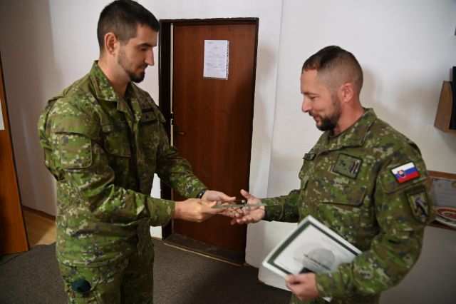Zastupujúci veliteľ major Marcel Leferovič spolu s náčelníkom štábu majorom Tomášom Queckom a veliacim poddôstojníkom oddielu nadrotmajstrom Jánom Antalom odovzdali odchádzajúcemu kolegovi pamätnú plaketu a odznak Náčelníka Generálneho štábu OS SR, poďakovali mu za roky práce a kamarátstva a popriali mu do ďalšej kariéry, ale aj osobného života veľa úspechov.