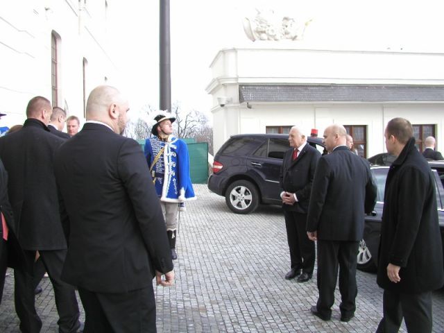 V utorok 26. februára 2013 navštívil Slovensko prezident Českej republiky Václav Klaus s manželkou. Bola to jeho posledná oficiálna návšteva vo funkcii českej hlavy štátu. Po prijatí slovenským prezidentom Ivanom Gašparovičom v Grasalkovičovom paláci sa delegácia presunula na Bratislavský hrad, kde predseda Národnej rady SR pozval Českého prezidenta na slávnostný obed. Pri tejto príležitosti mu jednotka Čestnej stráže OS SR, odetá do krásnych historických uniforiem, vzdala vojenské pocty – špalier. Jednotka ho ďalej sprevádzala aj pri presune na návštevu vernisáže, ktorá sa uskutočňuje pri príležitosti 20. výročia vzniku samostatných republík Česka a Slovenska, a tiež pri odchode z reprezentačných priestorov Bratislavského hradu.