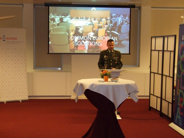 Pri príležitosti ukončenia predsedníctva SR v Rade EÚ (SK PRES) sa 6. Decembra 2016 v priestoroch SZ SR pri EÚ v Bruseli uskutočnila slávnostná recepcia pracovnej skupiny vojenského výboru EÚ (EUMCWG) a pracovnej skupiny pre spôsobilosti (EUMCWG/HTF). Aktivity sa zúčastnili aj predseda EUMCWG brigádny generál Juan Manuel Orti PÉREZ (ES) a predseda EUMCWG/HTF plukovník Jean-Louise NURENBERG (LU). V slávnostnom príhovore, zástupca vojenského predstaviteľa - plk. Ing. Erich HREHUŠ, vyzdvihol úspešnú prácu pracovných skupín a poďakoval sa za spoluprácu počas SK PRES. Zvlášť poďakoval podpredsedovi EUMCWG/HTF pplk. Ing. Jurajovi Tůmovi a nrtm. Bc. Alenke Dikovej, ktorý pracovali v kancelárii predsedu HTF v oblasti rozvoja vojenských spôsobilostí počas predsedníctva SK PRES16.