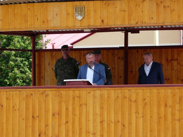 Následne so svojím príhovorom vystúpil veliteľ oddielu, ktorý poďakoval všetkým príslušníkom za ich profesionálny prístup počas vojskových skúšok projektu DELOSYS, testovania muničných elementov vo VTSÚ Záhorie a dosiahnuté výsledky počas odbornej prípravy na plnenie úloh operácie. Plukovník Roman Bobaľ poďakoval príslušníkom 21.shdo za vykonanú prácu počas plnenia úloh domáceho krízového manažmentu a tiež za vzorné plnenie si povinností počas vyslania do predsunutej prítomnosti v Lotyšsku. Nastúpeným vojakom sa prihovoril aj prezident Českej a slovenskej obce delostreleckej (ČASOD), ktorý sa zameral na tradície raketového vojska a delostrelectva a vyzdvihol spoluprácu medzi ozbrojenými silami SR a ČASOD.