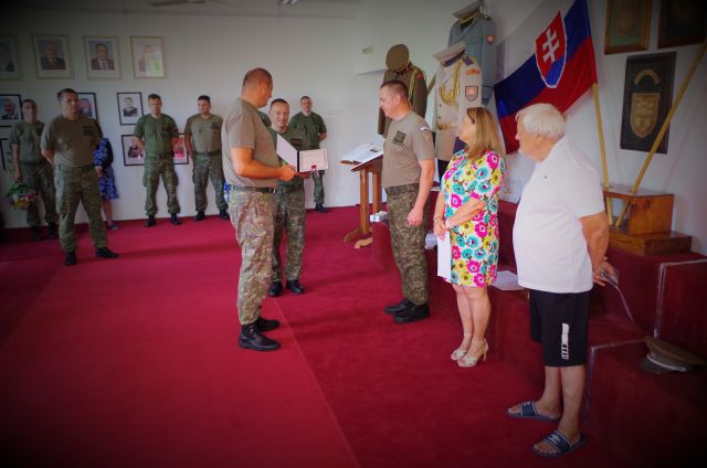 Vo štvrtok 30. júna bolo uskutočnené slávnostné odovzdanie vojenských vyznamenaní zamestnancom vo verejnej službe pani Soni Kamenárovej a pánovi Jurajovi Pivkovi, pri príležitosti ich životného jubilea. Zároveň sa príslušníci útvaru rozlúčili s nrtm. Mgr. Petrom Tóthom, ktorému bolo ukončené vyčlenenie k Čestnej stráži prezidenta.