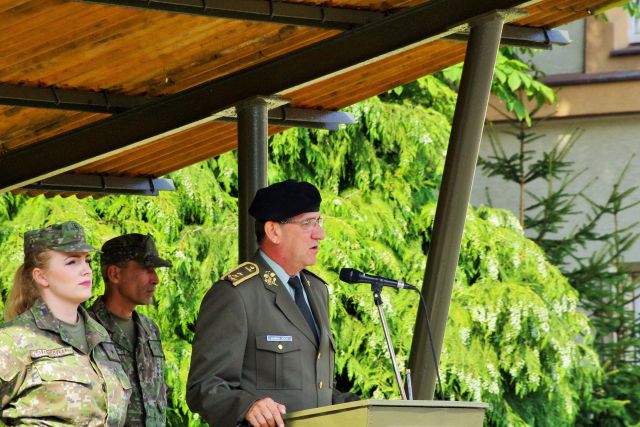 Na záver príslušníci Práporu podpory velenia PS vykonali slávnostný pochod, pod velením nového veliteľa podplukovníka Michala Rázgu.