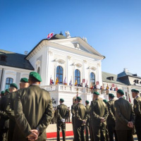 Slávnostný ceremoniál pripevnenia stúh na bojovú zástavu prezidentkou SR