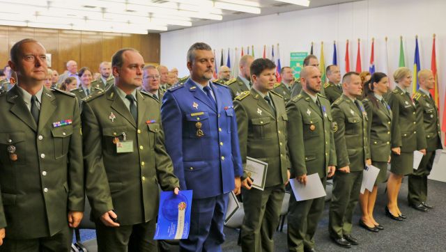 Po odznení štátnej hymny Slovenskej republiky, boli vyhlásené rozkazy prezidenta Slovenskej republiky k 74. výročiu Slovenského národného povstania a k 26. výročiu prijatia Ústavy Slovenskej republiky, ktoré nám pripomenuli význam a dôležitosť najvýznamnejších udalostí v moderných dejinách Slovenska. Pri príležitosti slávnostného zhromaždenia zástupca veliteľa pozemných síl brigádny generál Karol Navrátil zablahoželal k týmto významným sviatkom a udelil vojenské vyznamenania a mimoriadne ocenenia za osobitné zásluhy celkovo ôsmim príslušníkom veliteľstva.
