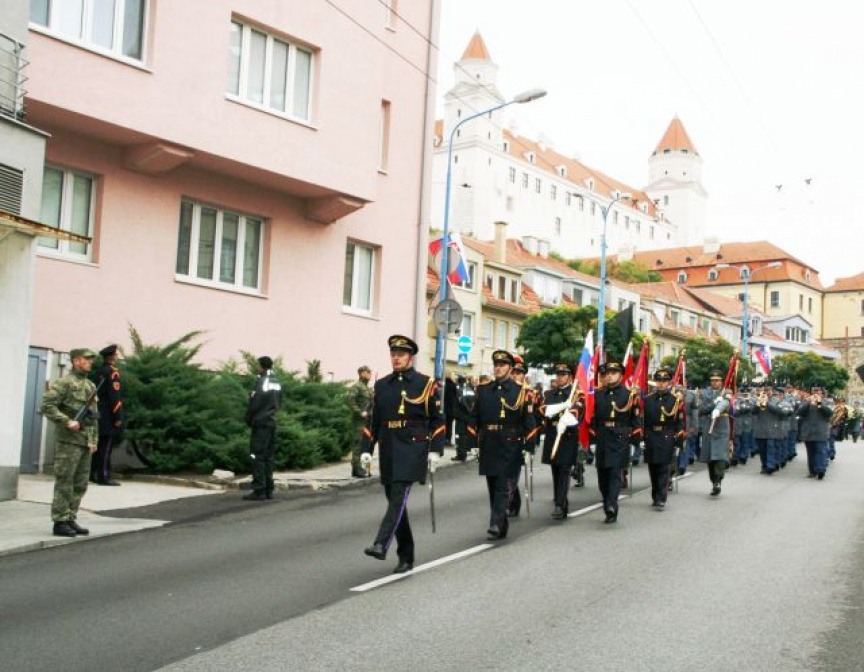 Na pravé poludnie za zvukov zvonov bratislavských chrámov a katedrál sa smútočný sprievod presunul z Bratislavského hradu cez Palisády do Prezidentského paláca. Na čele sprievodu pochodoval veliteľ Čestnej stráže prezidenta SR plukovník Miroslav Ištván. Za veliteľom so zástavou a štandardou prezidenta pochodovali príslušníci Čestnej stráže prezidenta SR, s bojovými zástavami príslušníci Čestnej stráže OS SR. Smútočnú atmosféru dotvárala Vojenská hudba OS SR. Súčasťou smútočného sprievodu boli dve prezidentove čestné jednotky. Popri rakve uloženej na historickej lafete pochodovali príslušníci prezidentovej stráže. Za rakvou sa pomalým krokom presúval smútočný sprievod, ktorý tvorila najbližšia rodina, najvyšší ústavní činitelia, vzácni hostia. Na záver smútočného sprievodu pochodovalo stoosemdesiat príslušníkov Ozbrojených síl SR.