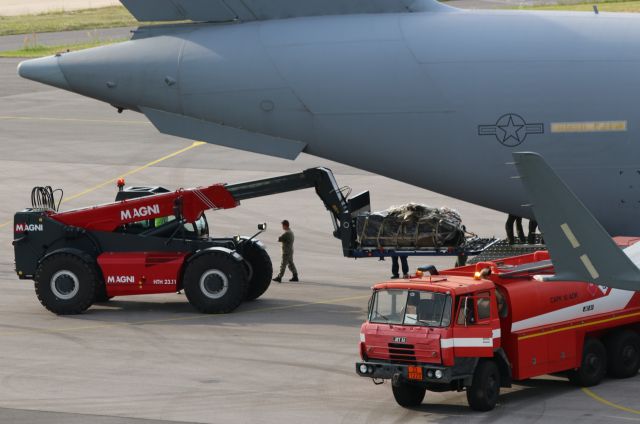 Pristátiu štvorice bojových lietadiel predchádzal prílet transportného lietadla C-17, ktoré priviezlo časť zabezpečujúceho personálu a potrebné vybavenie na obsluhu lietadiel.