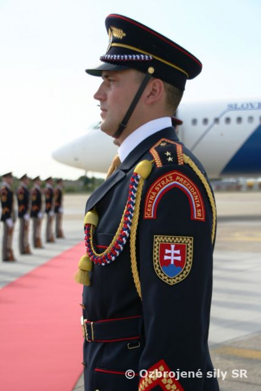 Pocty pri odlete prezidentského páru zabezpečili na Letisku M. R. Štefánika príslušníci Čestnej stráže prezidenta Slovenskej republiky (ČS PSR).