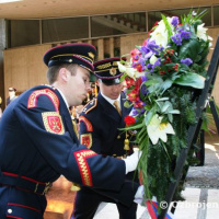 Program oficiálnej návštevy pokračoval návštevou Banskej Bystrice. Primátor mesta Peter Gogola odovzdal do rúk najvyšších štátnych predstaviteľov symbolický kľúč mesta. Po prehliadke námestia nasledovalo položenie vencov k pamätníku SNP.