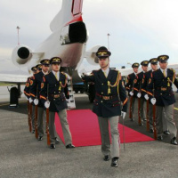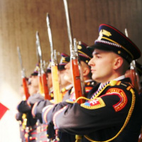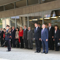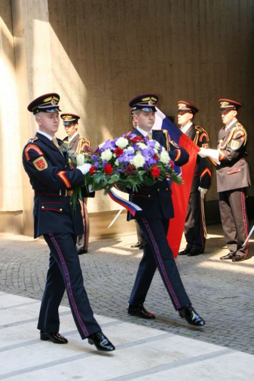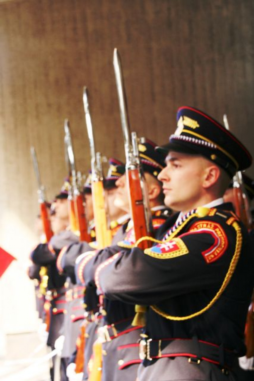 Najvyššieho slovinského predstaviteľa privítala na nádvorí Prezidentského paláca Čestná stráž prezidenta Slovenskej republiky (ČS PSR).