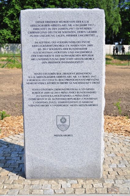V súlade s dohodou medzi vládami SR a Nemeckej spolkovej republiky o vojnových hroboch z 12. augusta 2000 sa z poverenia Nemeckého ľudového zväzu starostlivosti o vojenské hroby za organizácie Spoločnosti starostlivosti o nemecké vojnové hroby na Slovensku sa dňa 31. mája 2011 príslušníci 21.zmiešaneho mechanizovaného práporu Trebišov, za riadenia veliaceho poddôstojníka práporu - šbnrtm. Martina RUŠČINA zúčastnili na spoločnej pracovnej brigáde s príslušníkmi nemeckého Bundeswahru na obnove vojenského cintorína z čias 1.svetovej vojny v Medzilaborciach . Hlavnou úlohou tejto spoločnej brigády bolo dokončenie prác pri úprave terénu a dokončenie oplotenia okolo celého areálu vojenského cintorína. Tato spoločná brigáda bola posledným krokom pred slávnostným zasvetením. Po ukončení prác sa príslušníci 21.zmpr Trebišov spolu s príslušníkmi Bundeswahru zúčastnili na spoločnom obede, kde sa všetkým prítomným poďakoval pán Ján TOMKO, zástupca Spoločnosti o nemecké vojnové hroby so sídlom v Prešove. Ako sa vyjadril p. TOMKO, vysoko si cení spoluprácu pri obnove cintorínu v Medzilaborciach príslušníkmi 2.mechanizovanej brigády a členov Bundeswahru.