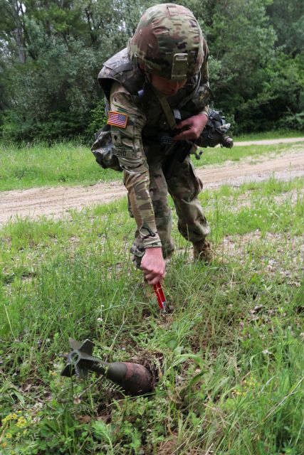 Na cvičisku Váh sa uskutočňuje počas dvoch májových týždňov spoločný výcvik slovenských a amerických ženistov. Konkrétne čaty EOD 901. ženijného práporu a čaty Národnej gardy Indiana. Veliteľ spoločného výcviku, ktorým je veliteľ 1. čaty EOD poručík Lukáš Hujo približuje, že cieľom a zmyslom výcviku je navzájom zjednotiť činnosť vojakov oboch armád, oboznámiť sa národnými postupmi v oblasti EOD. “ Základ je rovnaký, vychádza sa zo spoločnej metodiky. Určité odlišnosti sú skôr v detailoch. Napríklad v prípade zranenia Američania okamžite podávajú zranenému prvú pomoc. My zasa najskôr miesto zaistíme, prehľadáme, či sa tam ešte nevyskytujú nejaké nástražné výbušné zariadenia, ktorá by mohli zraniť ďalších vojakov. Som po prvý raz na takomto spoločnom výcviku s príslušníkmi americkej armády. Vidím veľkú snahu našich i amerických vojakov splniť čo najlepšie všetky ciele výcviku,“ hovorí poručík, ktorý v minulom roku absolvoval deväťmesačný kurz EOD v USA. Jednotke velí len pol roka a preto sa plne spolieha na skúsených odborníkov s dlhoročnou praxou ako sú nadrotmajster Gabriel Šimon, ktorý zastupuje veliaceho poddôstojníka, či velitelia EOD tímov nadrotmajstri: Martin Kabát, Peter Klein a Marián Bartek.
