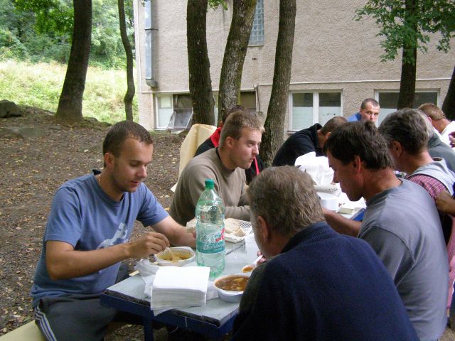 Pri pohľade do priezračnej vody nejednému rybárovi zaplesalo srdce. Nádherné kusy rýb však zostali vo vode. Namiesto nich sa skupina odvážlivcov vybrala na Sninský kameň, kým zvyšok si vychutnával krásu prírody prechádzkou okolo Morského oka. Po návrate na brigádnu ubytovňu sa nám dostalo očakávanej odmeny v podobe vynikajúceho guláša, ktorý pripravila z. Veronika MAČUROVÁ. Takto posilnení sa ešte niektorí dali do boja s futbalovou loptou.
